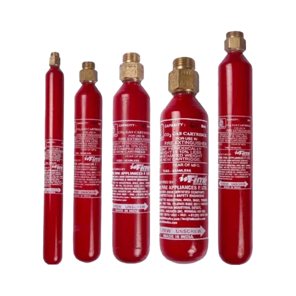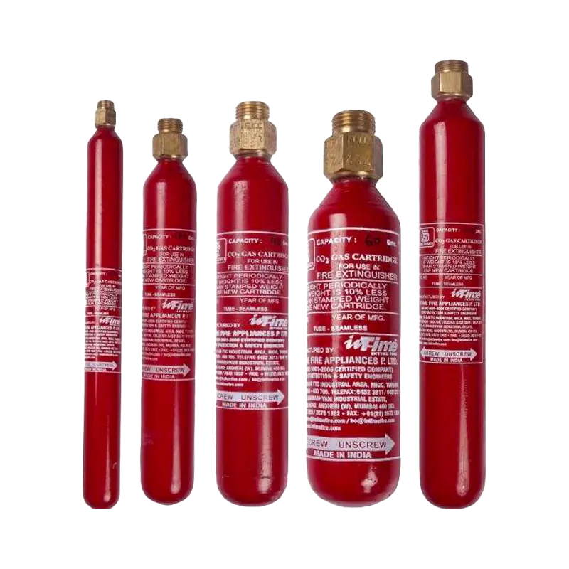 Intime Fire Appliances Pvt. Ltd. introduces premium-quality CO2 Gas Cartridges for fire suppression systems, manufactured to meet IS:4947 standards. Engineered for maximum efficiency and durability, these cartridges are available in a range of capacities (60g, 90g, 120g, 200g, and 300g) to cater to various fire protection needs. The seamless M.S. body (IS:1239 compliant) ensures high-pressure resistance, while the brass nut and left-hand threading provide secure and reliable connections. Each cartridge is finished with a 50-micron epoxy powder coating, enhancing corrosion resistance and extending lifespan. Ideal for use in industrial, commercial, and residential fire extinguishing systems.