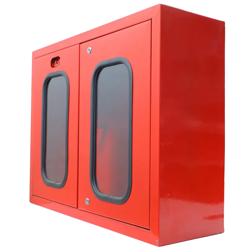The Double Door Hose Box is constructed from durable M.S. (Mild Steel) 16 SWG, offering strength and resistance to wear. Ideal for use in industrial, commercial, and residential buildings, it securely stores two 15-meter hose pipes and one short branch pipe nozzle. The box is designed to be wall-mounted, with an optional support stand available for flexible installation. It’s built to withstand harsh conditions and ensures that fire safety equipment is readily accessible when needed most. The box can also be custom-manufactured to meet specific customer requirements. Its compact and robust design, combined with easy access, makes it an essential part of any fire protection system.