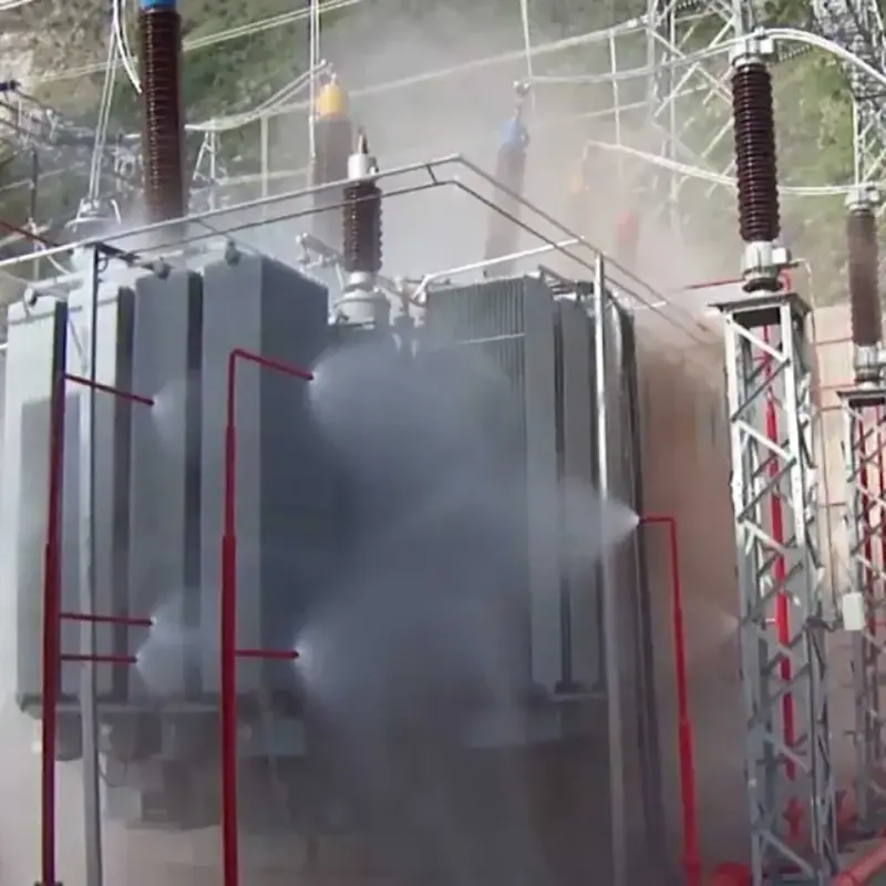 The Medium / High Velocity Water Spray System is a sophisticated fire suppression solution designed for combating fires involving flammable liquids, especially in high-risk environments like oil-filled transformers, storage areas, and industrial plants. The system utilizes water spray nozzles that project water in the form of a cone-shaped spray, which can achieve high velocities to efficiently suppress flames.